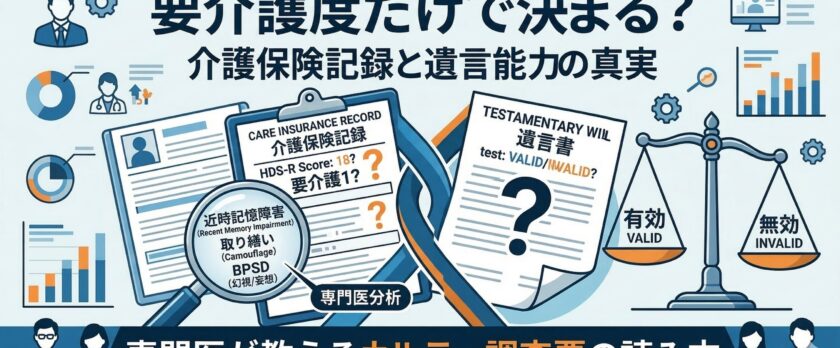 アルツハイマー型認知症の場合、法的な事理弁識能力の有無は、要介護度と必ずしも一致しません。本記事では、脳神経内科・認知症専門医の視点から、弁護士が見落としがちな「主治医意見書」と「認定調査票」の真の読み解き方を解説します。